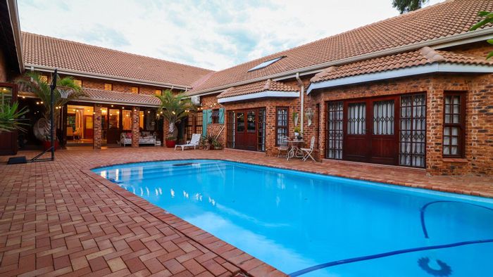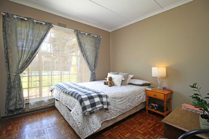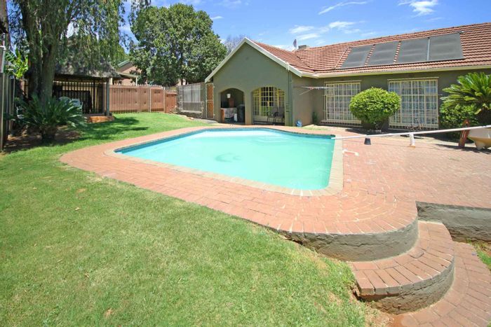 Entertainer's family home with built-in braai and bar, fireplace-warmed TV room and sparkling pool — secure property with CCTV and electric fence; four beds, two baths, double garage.