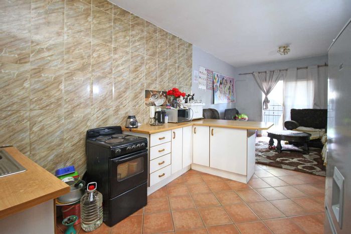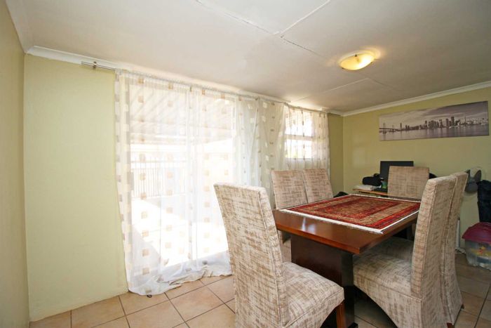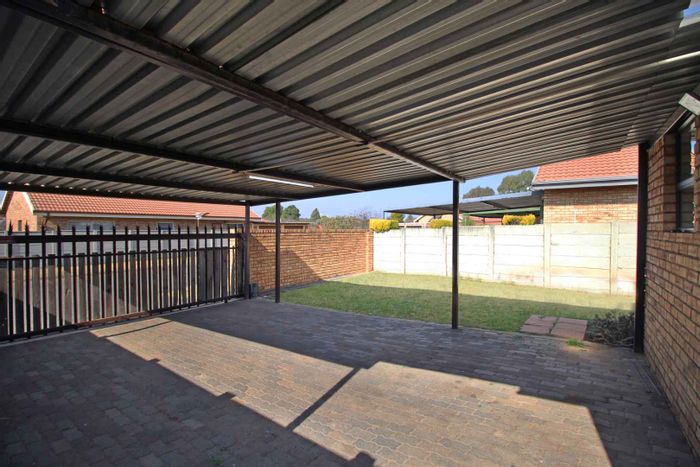 Relaxed suburban living in Greenhills Ext 3, Randfontein with secure, solar-backed security and communal entertainment garden; freestanding full-title townhouse offering three bedrooms, two bathrooms and double carport.