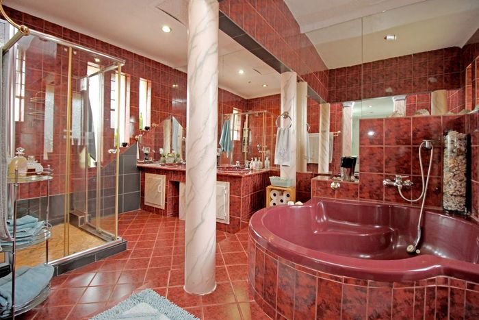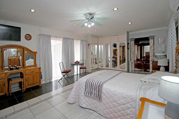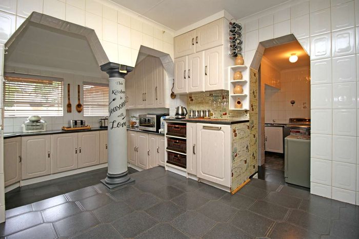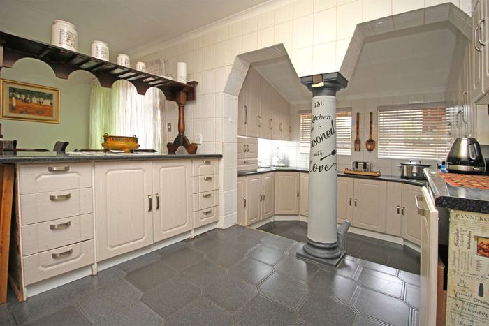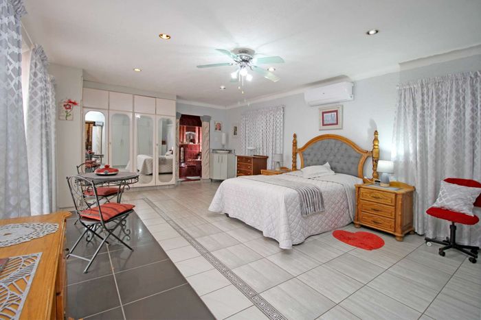 Entertainer's family haven in a peaceful, secure suburb, featuring a heated swimming pool, renovated kitchen with island, separate one-bed flatlet, and 3 beds, 2 baths, 3 garages.