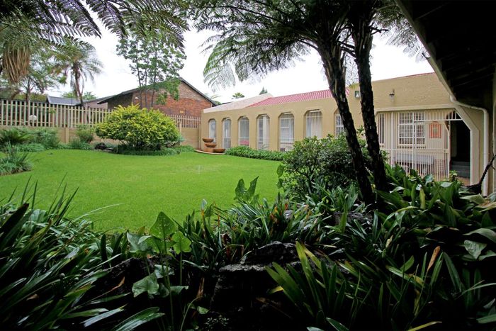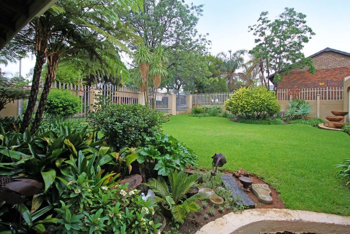 Relaxed suburban living in Randpoort, Randfontein with lush garden terrace and sparkling swimming pool—covered patio for entertaining, modern open-plan kitchen, and double garage parking.