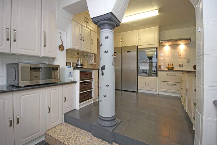 Perfect family retreat within walking distance to the primary school, featuring a pool and entertainment lapa with built in bar and braai, modern kitchen plus study; five bedrooms, two garages.