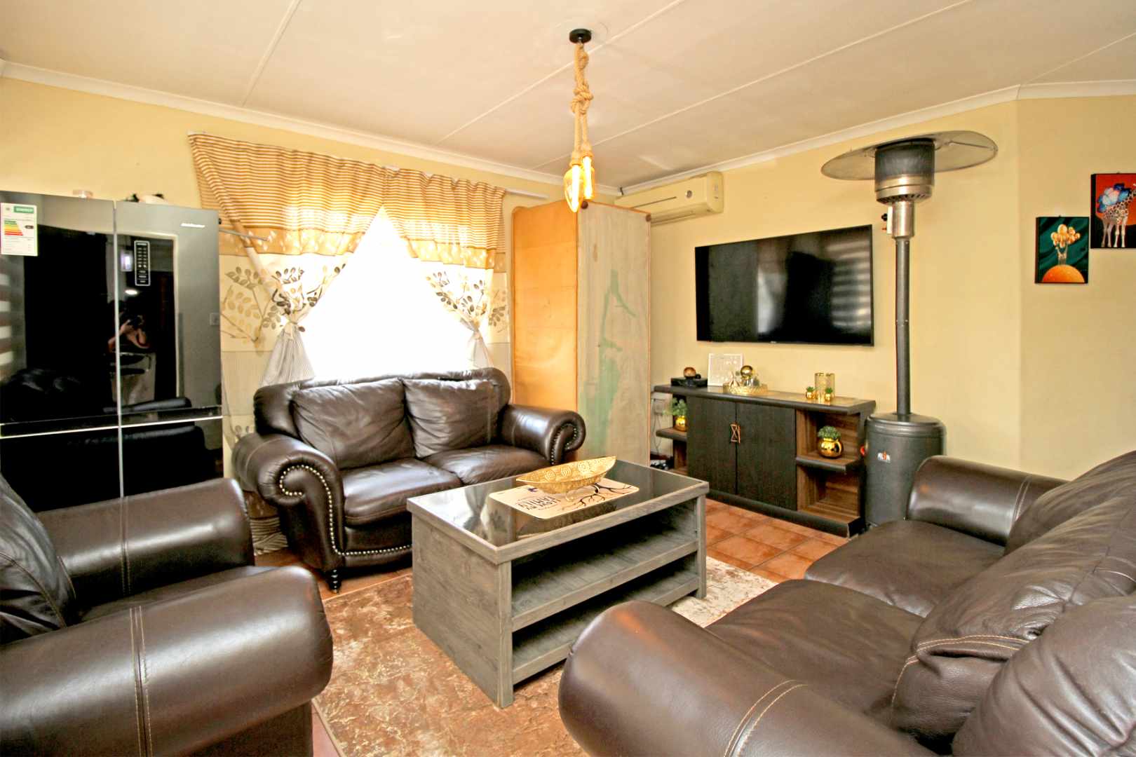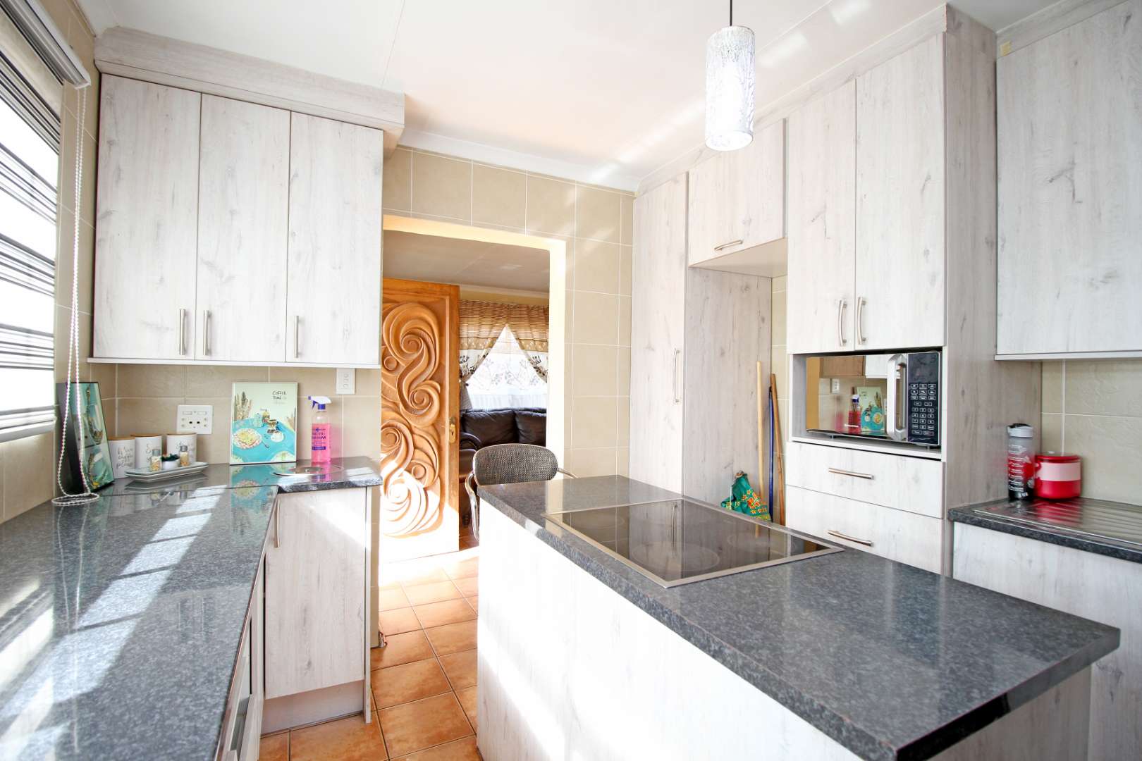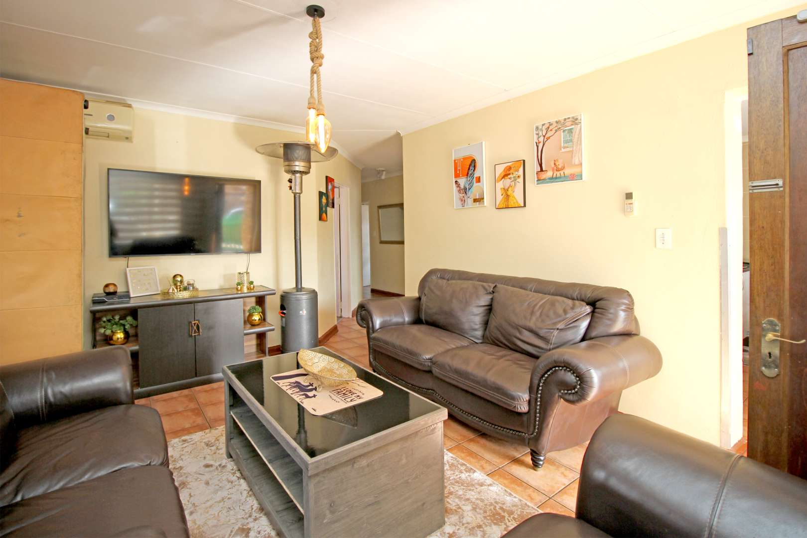 ✅ Open-Plan Living: The spacious TV/Living room flows seamlessly into the passage, creating a welcoming atmosphere with stylish floor tiles and natural light.