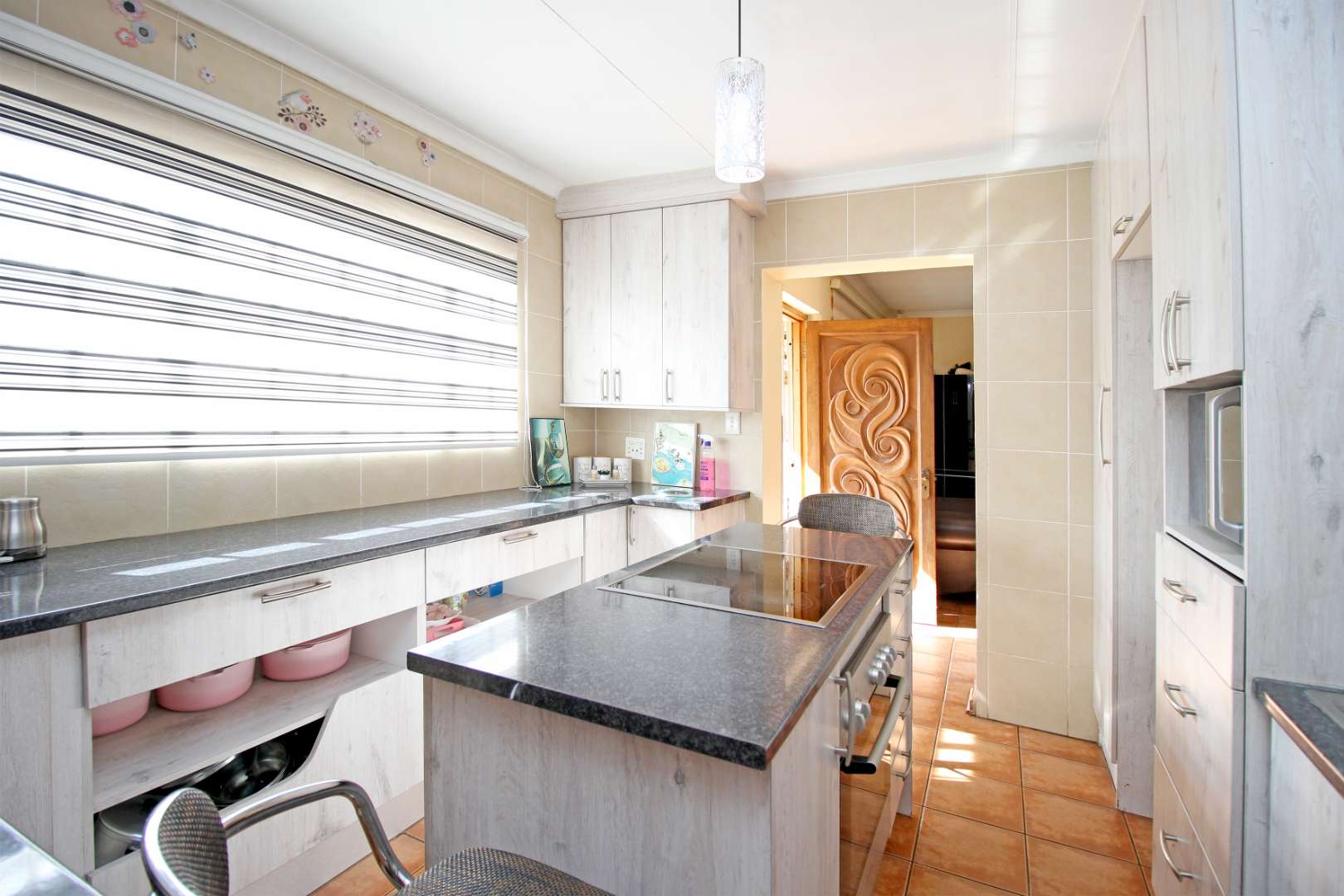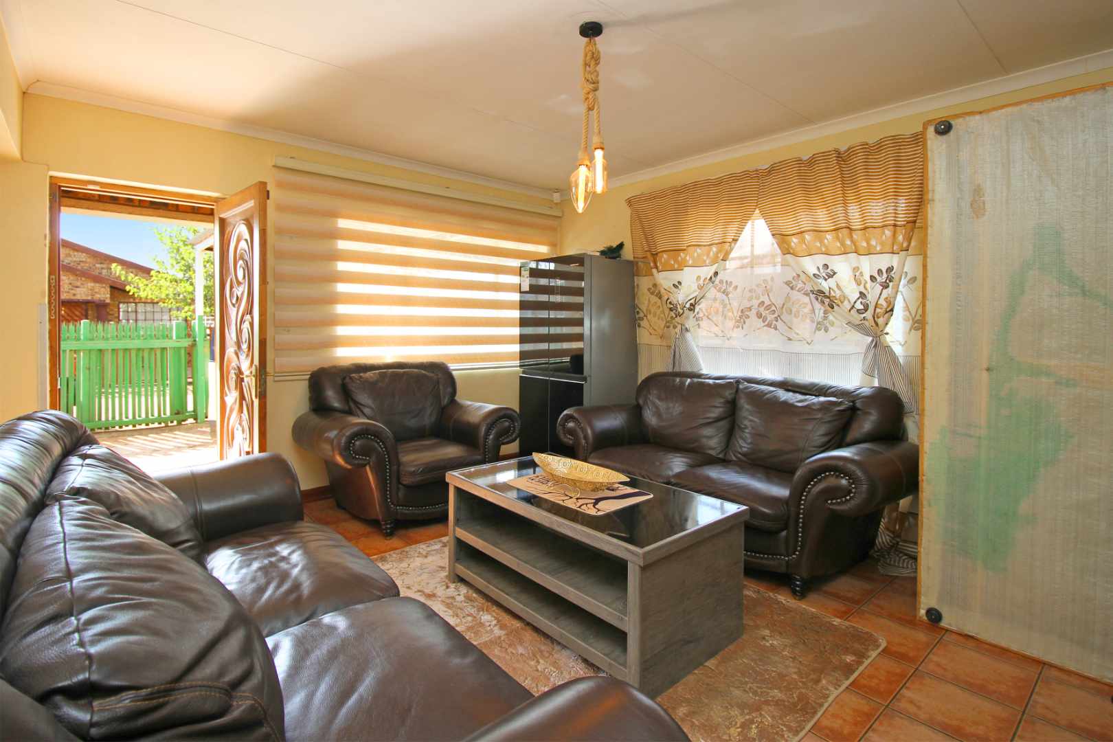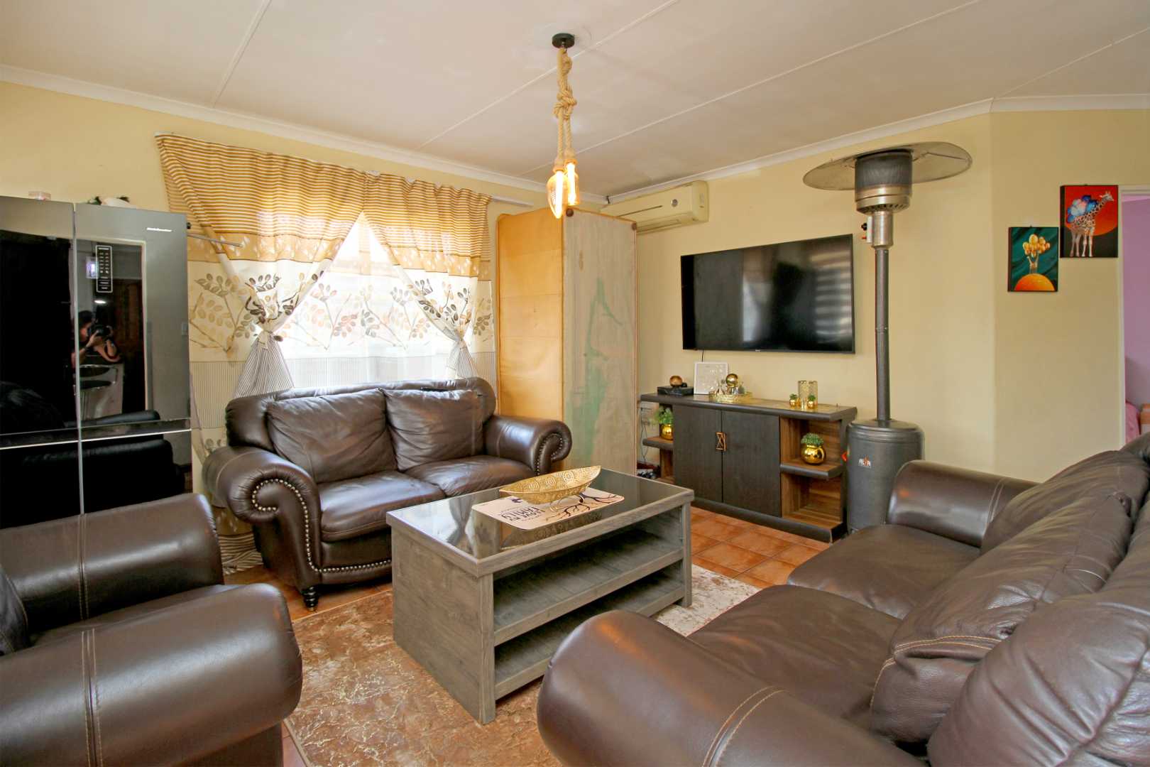 ✅ Open-Plan Living: The spacious TV/Living room flows seamlessly into the passage, creating a welcoming atmosphere with stylish floor tiles and natural light.
