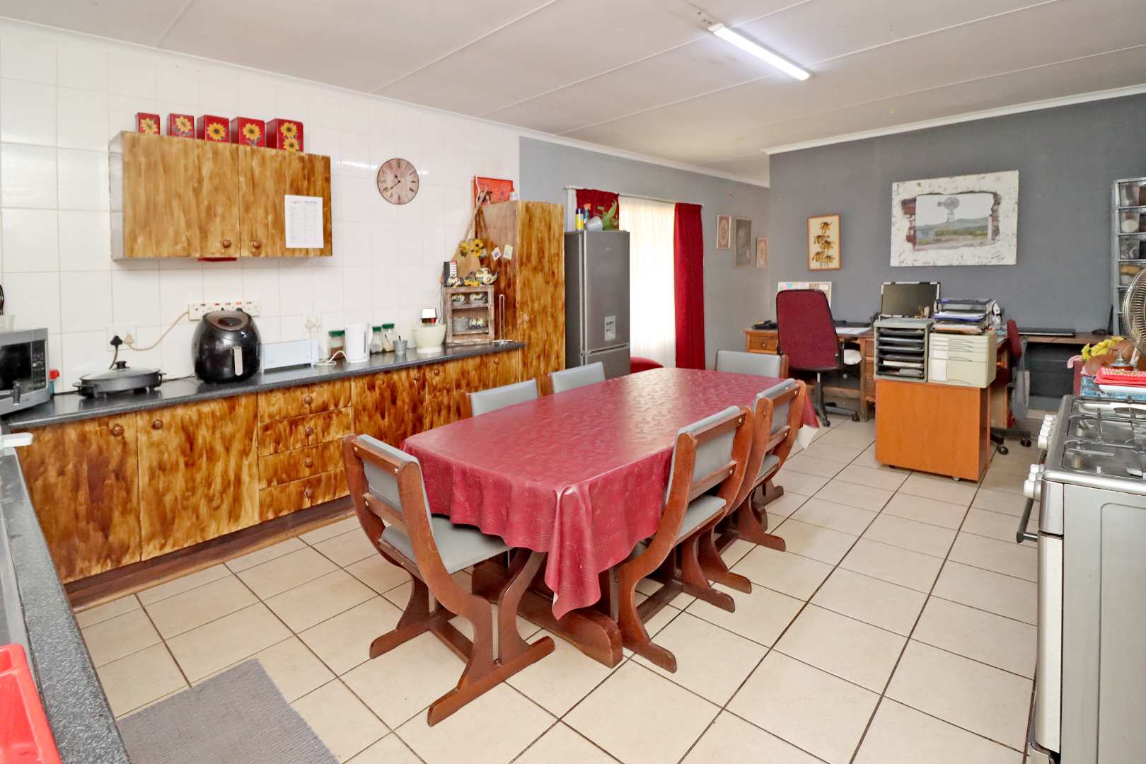 This expansive 5-bedroom home offers ample space and versatility, making it ideal for large families or those seeking a property with rental potential. With 2 full bathrooms and 2 kitchens (one featuring a separate scullery), this home provides both convenience and comfort. The first kitchen with a separate scullery opens to a cozy dining room, a large TV room with a fan and fireplace, while the second kitchen leads to a covered entertainment area complete with a built-in braai. The property also boasts a second family room, perfect for relaxation or entertainment.