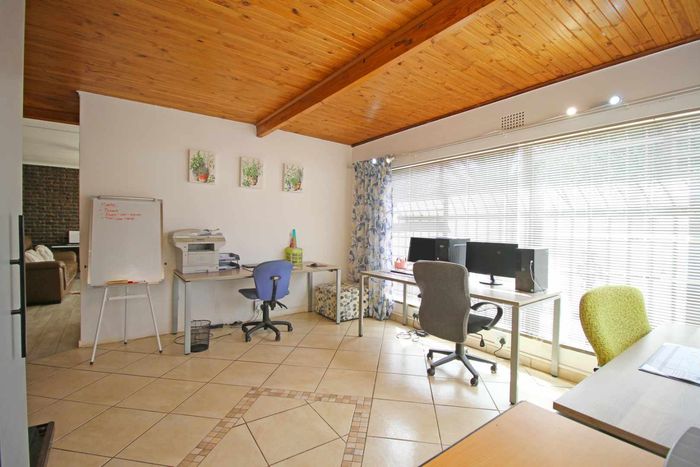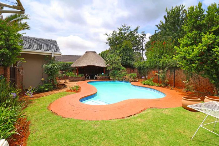 Perfect for family living and effortless entertaining in a quiet, established garden setting; modern kitchen, separate study, TV lounge with wooden ceilings, sparkling pool, three bedrooms, three bathrooms.