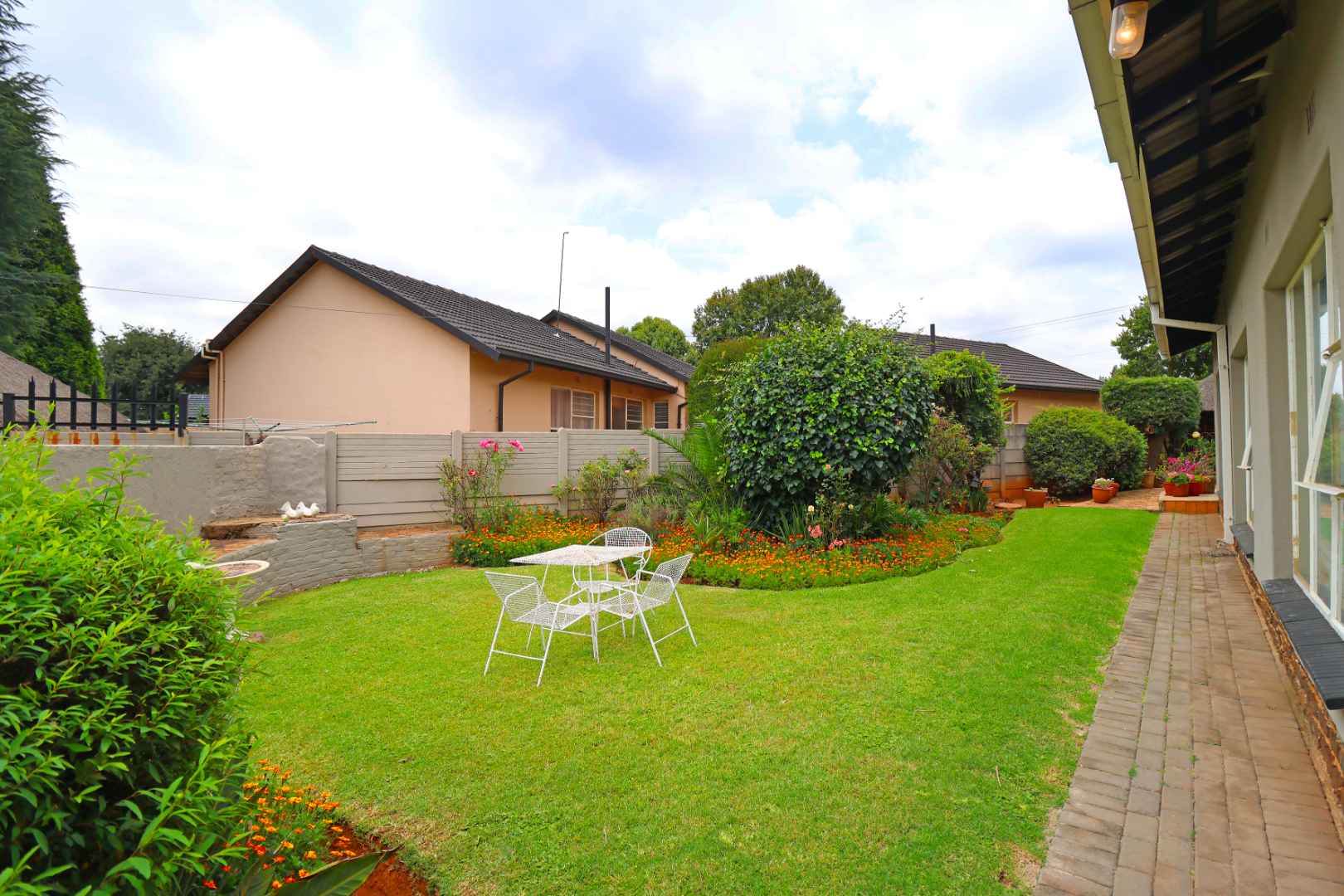 This well-maintained family home offers comfort, space, and excellent entertainment features. The property boasts three generously sized bedrooms, all fitted with laminated flooring and built-in cupboards, and three neat bathrooms.