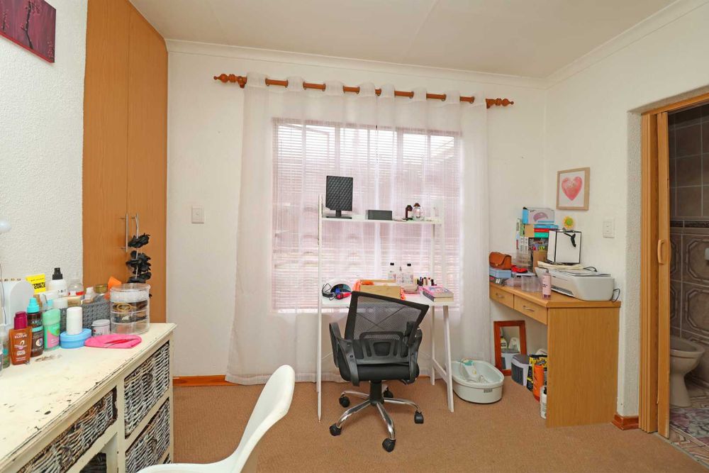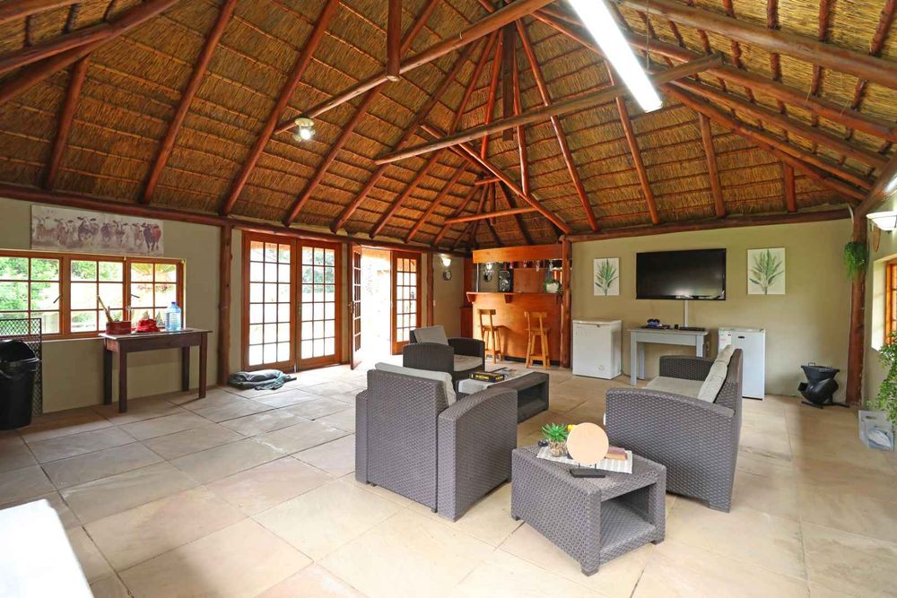 The home features a neat, modern kitchen with a separate scullery, providing ample storage and functionality. A large study offers the ideal space for a home office or additional living area. The lounge is warm and inviting, complete with a built-in braai, making it perfect for year-round entertaining.