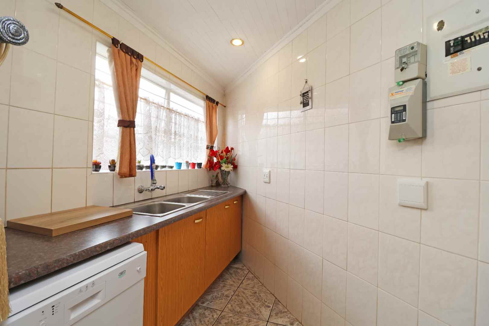 From the kitchen, a back door leads directly to a thatched roof lapa “man cave” complete with: