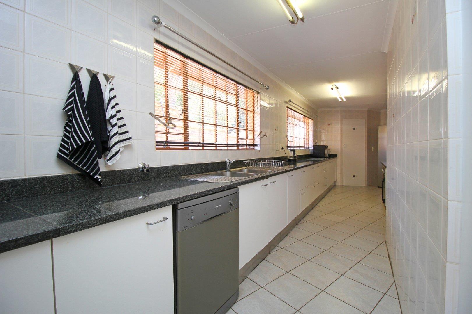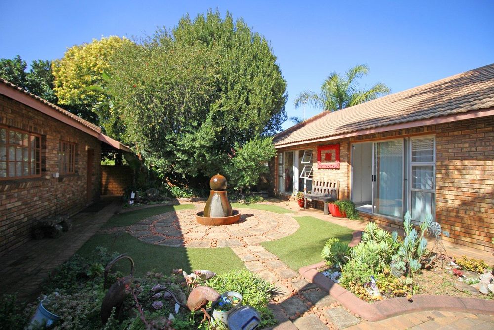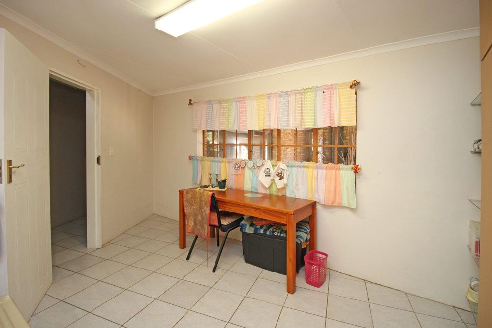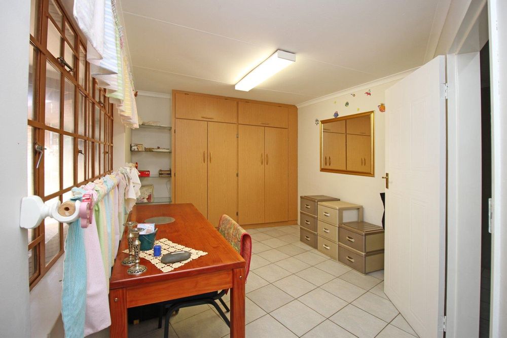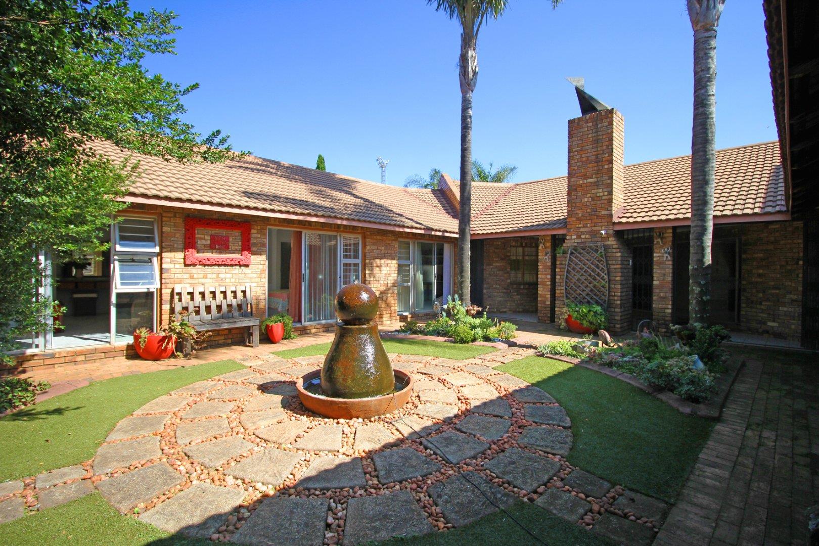 Down the passage, you’ll find a convenient laundry room, a dedicated hobby room, a private study, and three spacious bedrooms, each with sliding doors opening into a sunny courtyard. The home boasts two full bathrooms, with the main bedroom enjoying a en-suite.