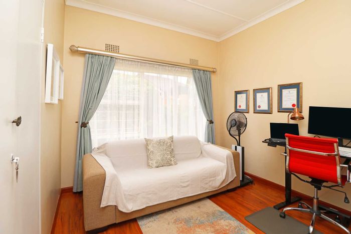 Entertainer's family haven in a peaceful, secure suburb, featuring a heated swimming pool, renovated kitchen with island, separate one-bed flatlet, and 3 beds, 2 baths, 3 garages.