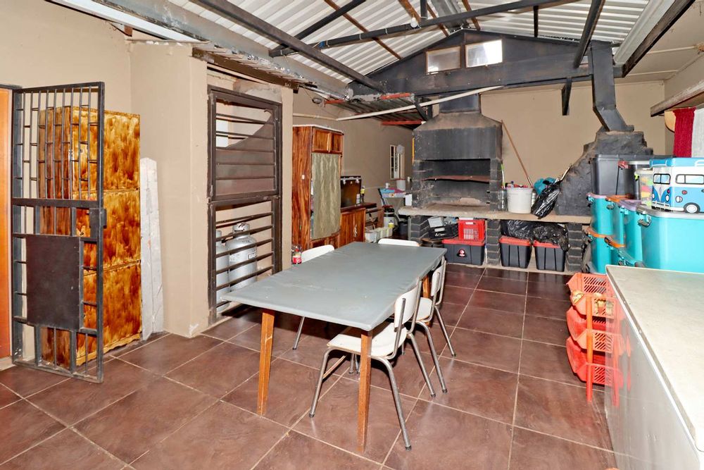This expansive 5-bedroom home offers ample space and versatility, making it ideal for large families or those seeking a property with rental potential. With 2 full bathrooms and 2 kitchens (one featuring a separate scullery), this home provides both convenience and comfort. The first kitchen with a separate scullery opens to a cozy dining room, a large TV room with a fan and fireplace, while the second kitchen leads to a covered entertainment area complete with a built-in braai. The property also boasts a second family room, perfect for relaxation or entertainment.